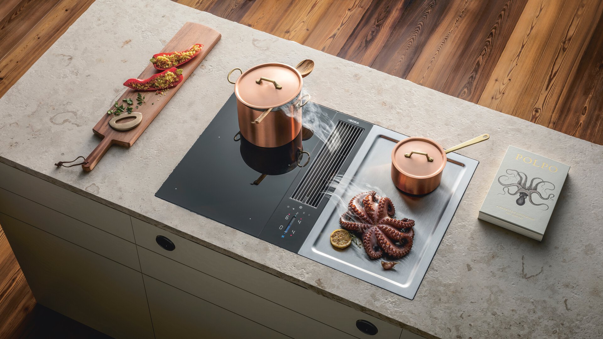 BORA Classic 2.0 set s indukcijskom pločom s fleksibilnim zonama + Tepan roštilj (7125,00 EUR -45% = 3.918,75 EUR)